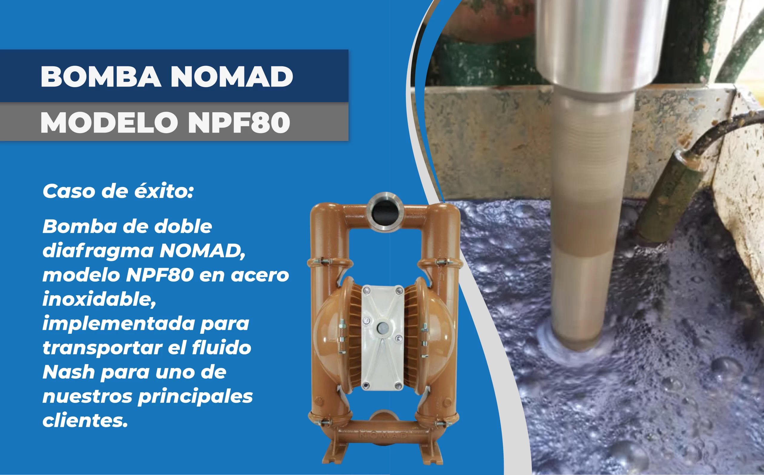 “La instalación de bombas neumáticas NPF80 de NOMAD garantizó un rendimiento excepcional y mayor seguridad en el transporte del fluido ‘Nash’, cumpliendo con los estándares de la industria minera.”